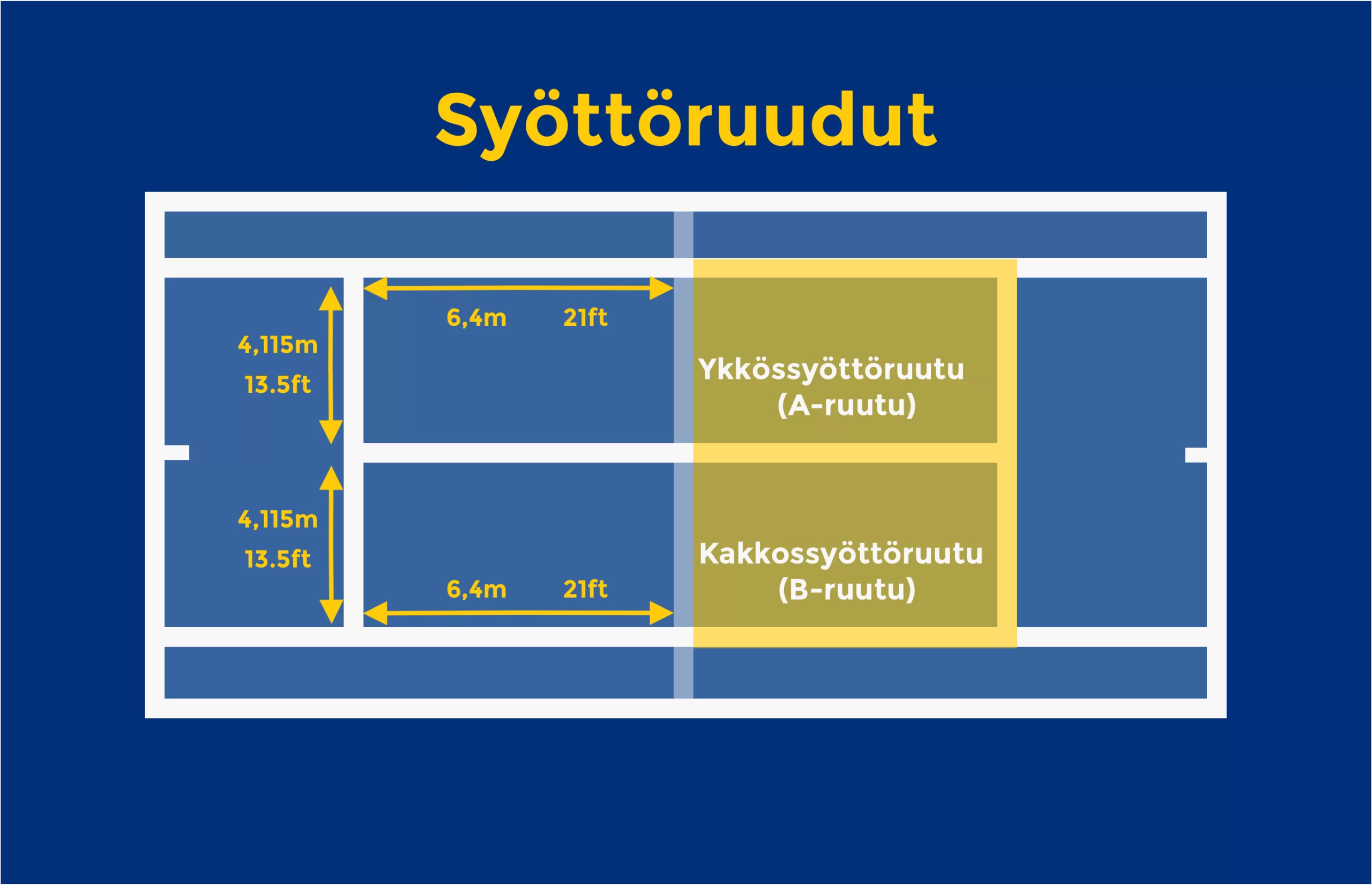 Syöttöruudut merkitsevät alueen, johon pallon on laskeuduttava syötössä.