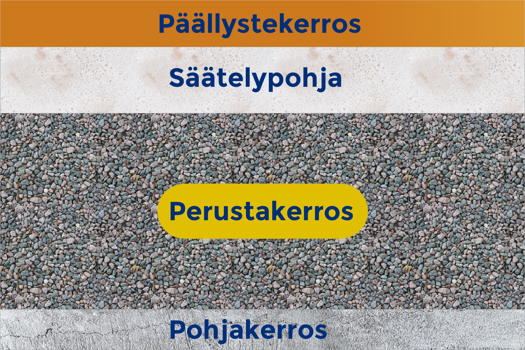 Perustakerros on yleensä noin 14-28mm paksu ja se tulisi olla 150mm päällystekerroksen alapuolella.