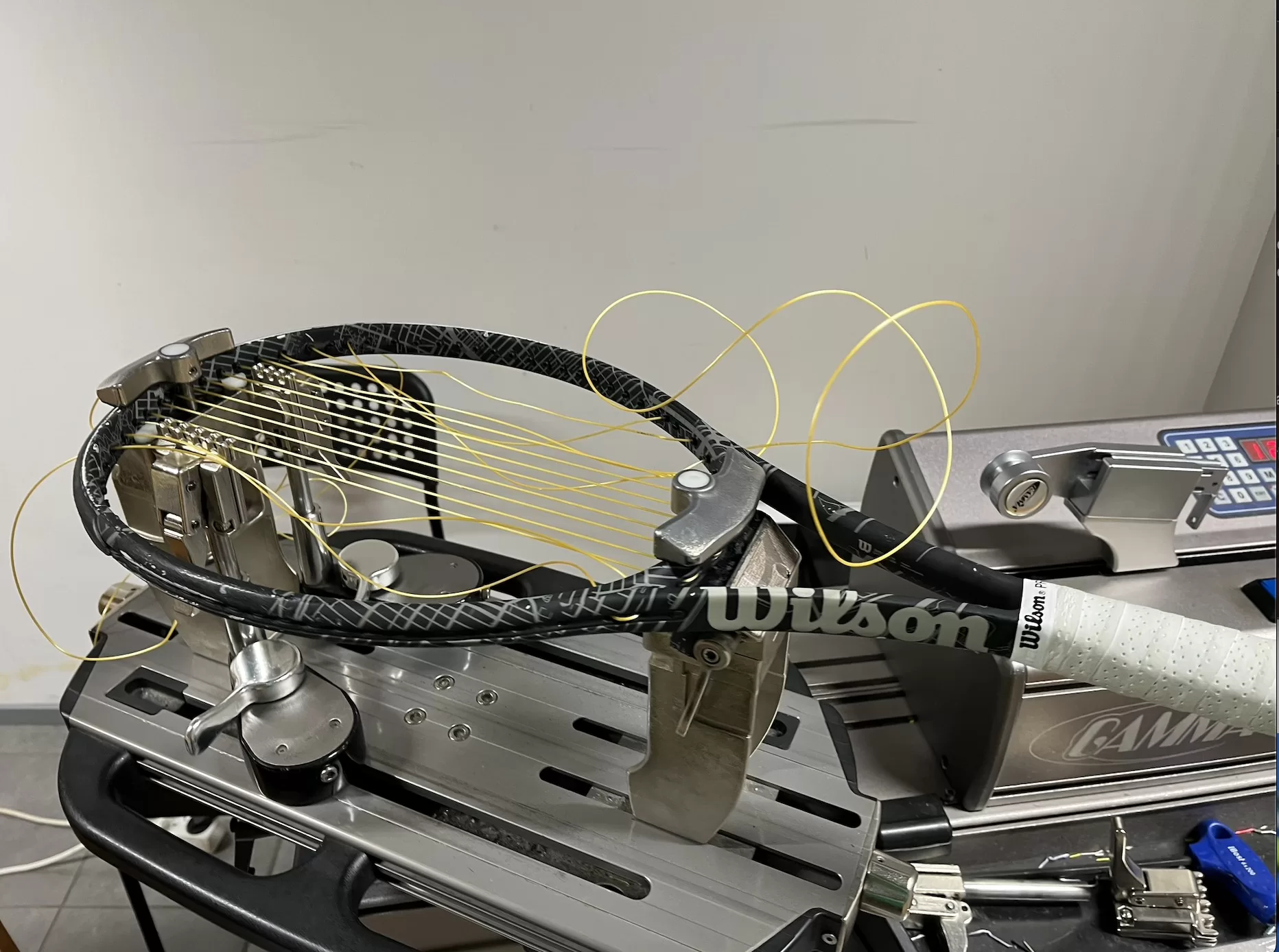 – Ei voi valitettavasti. Tennismailaan pitää jännittäessä vaihtaa aina uudet jänteet.