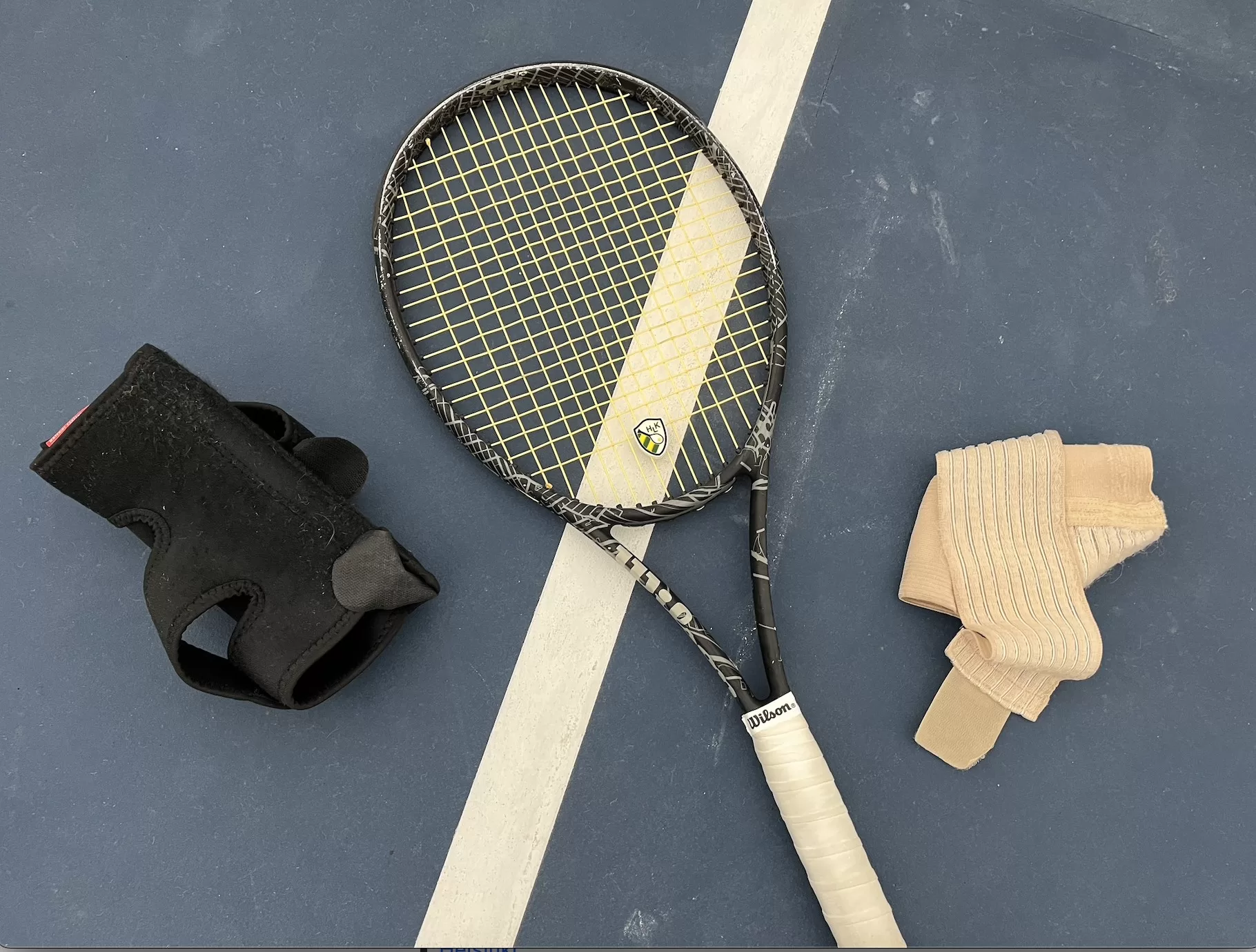 Tennismaila polvi- ja nilkkatuki